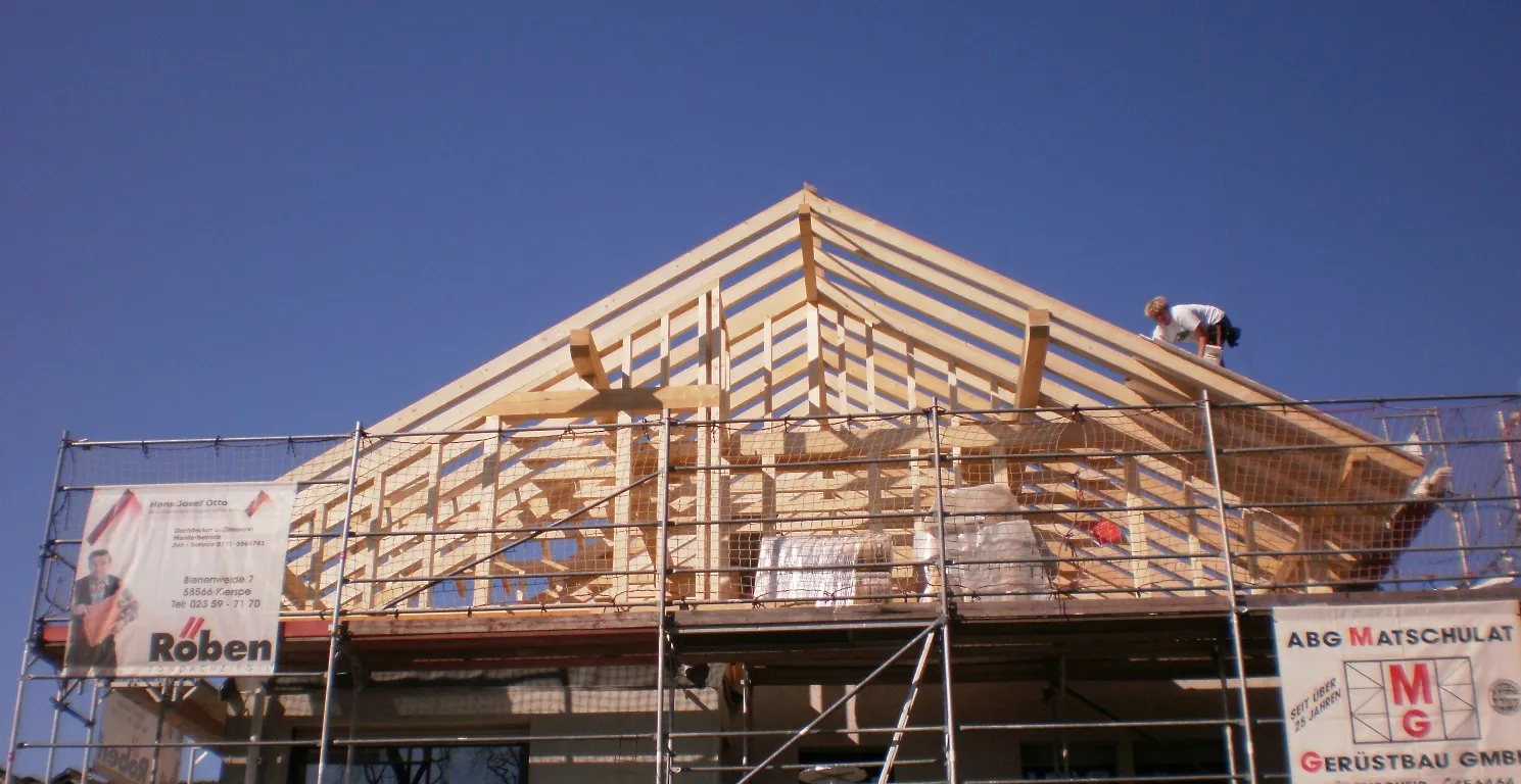 Wenn Sie eine Dachsanierung  komplett mit Dachstuhl, Dacherweiterung mit Kniestock und Gauben planen, oder einen Anbau / Vorbau / Wintergarten in Holzrahmenbau, sind wir als Dachdecker – und Zimmerer – Meisterbetrieb Ihr direkter Ansprechpartner.